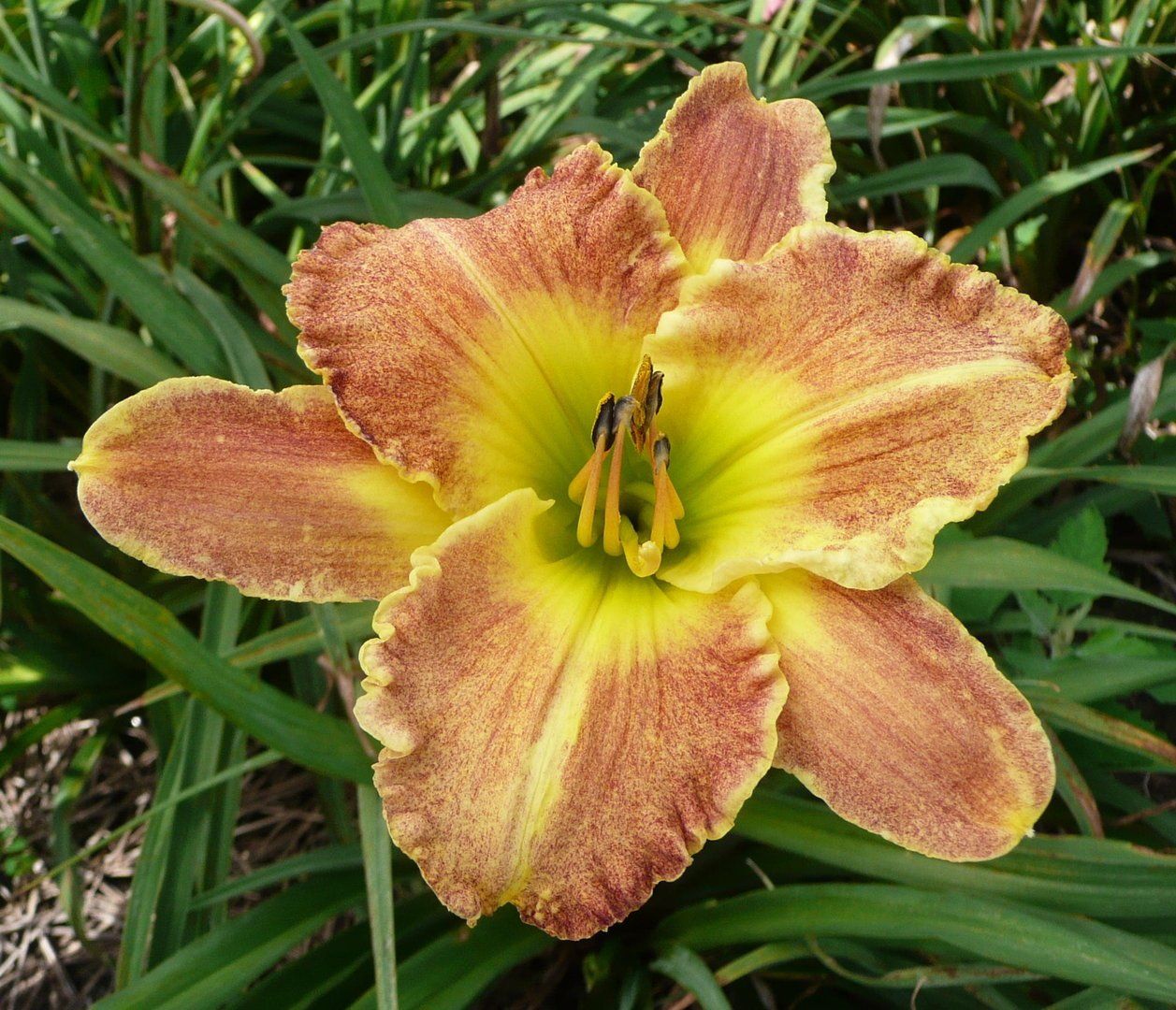 Daylilies are susceptible to "Leaf Streak" fungus. This fungus mainly occurs when foliage is wet for more than 3 ½ hours at 55-85 degrees Fahrenheit. Watering in the daytime and using drip irrigation helps. You can easily control Leaf Streak by using fungicides (contact or systemic). Daconil, Banner Max, and Dithane are a few effective fungicides.